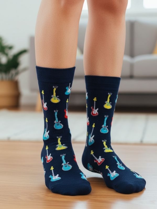 Müziğin ritmini ve enerjisini günlük stilinize taşımak isteyenler için Çoklu Gitarlar Desenli Renkli Soket Çorap vazgeçilmez bir aksesuardır. Birbirinden farklı tipteki elektro, akustik ve bas gitar figürleriyle süslü bu çoraplar, sadece bir giyim eşyası değil, aynı zamanda müziğe olan tutkunuzu ve özgün ruhunuzu yansıtan eğlenceli bir ifadedir. Gitar çorabı veya müzik temalı çorap arayışında olan, canlı renkleri ve dinamik desenleri seven her müzisyenin, DJ’in veya müzikseverin ilgisini çekecek bu model, desenli soket çorap koleksiyonunuzun en akılda kalıcı parçası olacaktır.