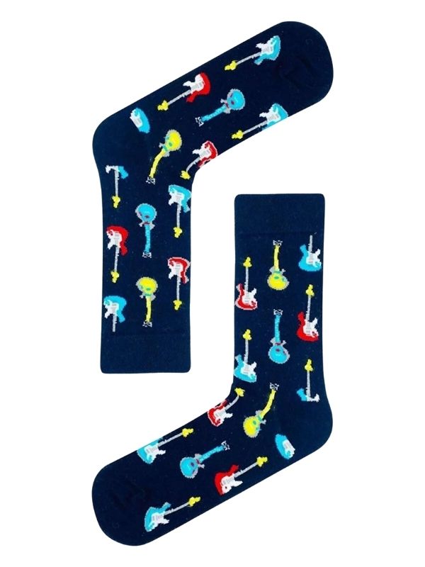 Çoklu Gitarlar Desenli Renkli Soket Çorap