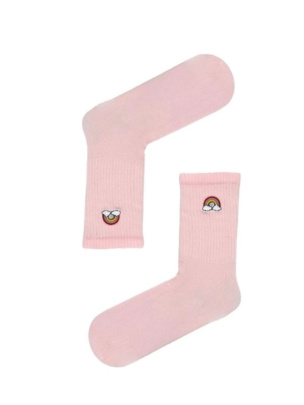 Gökkuşağı Nakışlı Pembe Tenis Spor Çorap