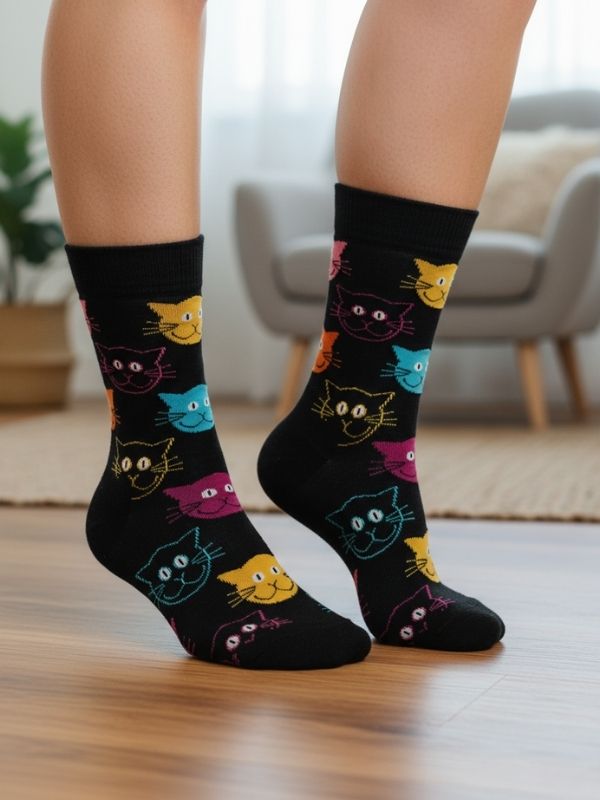 Yüksek kaliteli iplikler ve özenli işçilikle üretilen bu soket çorap, hem deseninin canlılığını hem de yapısındaki üstün konforu uzun süre korur. Çorabın kullanım ömrünü uzatan ve yıpranmaya karşı koruyan özellikler; en çok aşınan bölgelerdeki Topuk Burun Takviyesi ve parmaklarda tahrişi engelleyen Dikişsiz Burun teknolojisidir. Ayak bileğini rahatsız etmeden yerinde tutan Sıkmayan Lastik kısmı, kan dolaşımını engellemeden mükemmel bir uyum sunar. Bu temalı çorapları, özellikle siyah veya beyaz sade kıyafetlerle kombinleyerek kaplan deseninin gücünü ve çarpıcılığını ön plana çıkarabilirsiniz.