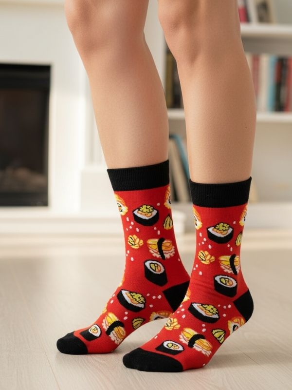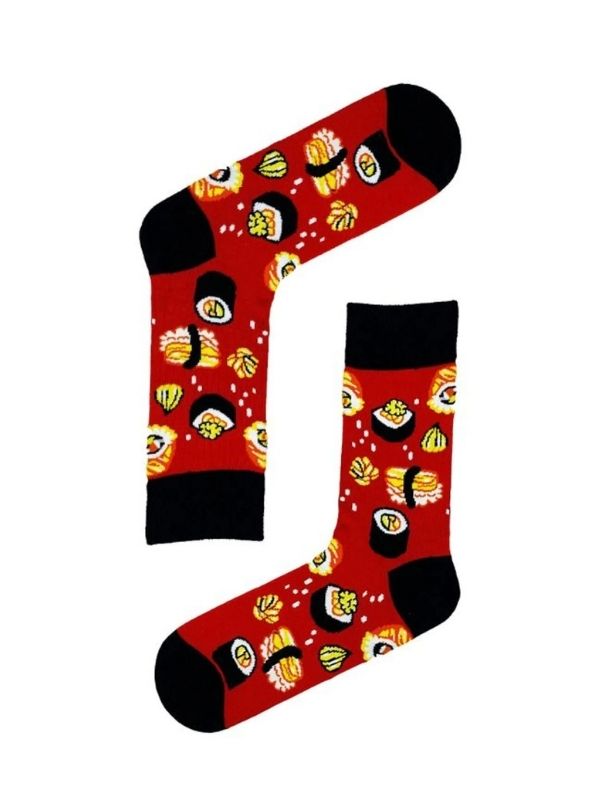 Kırmızı Rolls and Sushi Desenli Renkli Soket Çorap