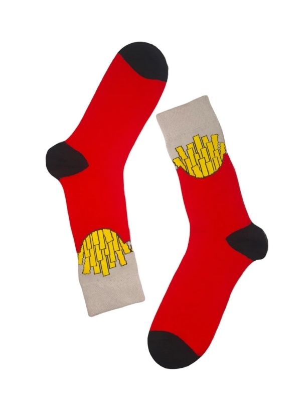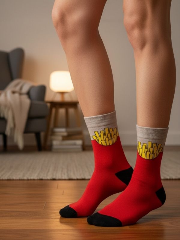 Giyimde mizahı ve popüler yeme-içme kültürünü sevenler için tasarlanan Patates Çubukları Tasarım Soket Çorap, günlük stilinize lezzetli ve esprili bir dokunuş katıyor. İkonik kırmızı kutusu içindeki çıtır çıtır patates kızartması desenleri, bu çorabı sadece bir giyim eşyası olmaktan çıkarıp, eğlenceli bir moda aksesuarına dönüştürüyor. Yemek temalı çorap veya esprili desenli çorap arayışında olan, tarzında neşe ve özgünlük kullanmayı seven herkesin koleksiyonuna eklemesi gereken bu özel tasarım, özellikle gençler ve yiyecek temalı hediyeler arayanlar için harika bir tercihtir. Bu çorap ile adımlarınızın ne kadar “lezzetli” olduğunu gösterin!