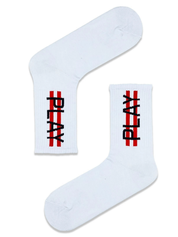 Günlük rutinini enerjiyle dolduran ve sporu yaşam tarzı haline getirenler için Play Yazılı Tenis Spor Çorapları , hareket etme motivasyonunu ayağınıza taşıyor. Üzerinde yer alan kısa ve etkili “Play” yazısıyla spor giyimde iddialı ve pozitif bir duruş sergileyen bu yazılı spor çorap, son tenis modası trendlerine mükemmel uyum sağlar. Performansınızı stilinizle birleştirerek aktif yaşam aksesuarı olarak fark yaratın.