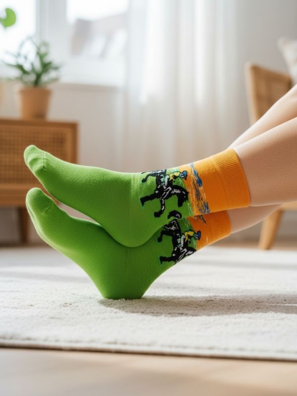 Yüksek kaliteli iplikler ve özenli işçilikle üretilen bu soket çorap, hem deseninin canlılığını hem de yapısındaki üstün konforu uzun süre korur. Çorabın kullanım ömrünü uzatan ve aşınmaya karşı koruyan özellikler; en çok aşınan bölgelerdeki Topuk Burun Takviyesi ve parmaklarda tahrişi engelleyen Dikişsiz Burun teknolojisidir. Ayak bileğini rahatsız etmeden yerinde tutan Sıkmayan Lastik kısmı, kan dolaşımını engellemeden mükemmel bir uyum sunar. Bu temalı çorapları, klasik spor ayakkabılarınızla, paçaları kıvrılmış chino pantolonlarınızla veya casual takım elbiselerinizle kombinleyerek at yarışı deseninizin sofistike ve dinamik enerjisini ön plana çıkarabilir, tarzınıza özgün bir detay katabilirsiniz.