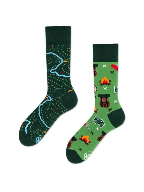 Maceraperest ruhunu ayaklarına taşı! Sağlı Sollu Kamp Desenli Soket Çorap, çadırlar, ağaçlar, dağlar gibi doğa temalı eğlenceli motiflerle tasarlanmıştır. Bu çoraplar, size her adımda bir kamp ateşi etrafındaki huzuru hissettirmeyi amaçlar. Sağlı sollu (asimetrik) desen yapısı, ürüne dinamik ve mizahi bir hava katarken, outdoor stilinizi şehir hayatına taşımanızı sağlar. Bu model, özellikle kamp desenli çorap, doğa temalı soket çorap, outdoor çorap veya eğlenceli yürüyüş çorabı arayan, doğayı ve macerayı seven, konfor ve stil arayan herkes için mükemmeldir.