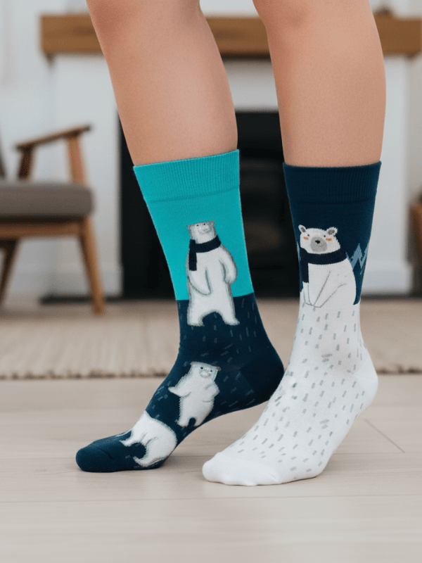 Tarzınızla fark yaratın! Sağlı Sollu Kutup Ayısı Desenli Soket Çorap, kış mevsiminin sevimli simgesi olan kutup ayısı figürlerini eğlenceli ve renkli bir tasarımla birleştiriyor. Sağlı sollu (asimetrik) yerleştirilmiş bu desenler, stilinize anında neşe ve özgünlük katarken, kutup ayısı teması doğa sevgisi ve çevresel duyarlılığı da çağrıştırır. Bu model, özellikle kutup ayısı çorap, sevimli hayvan desenli çorap, kış temalı soket çorap veya neşe veren figürlü çorap arayan, stilinde mizahı ve sıcaklığı birleştiren herkesin dikkatini çekecek eşsiz bir aksesuardır.