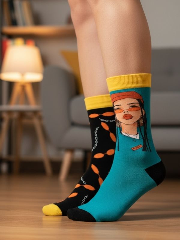 Giyiminizle farkınızı ortaya koyun ve özgür ruhunuzu yansıtın! Sağlı Sollu Rastalı Kadın Desenli Soket Çorap, renkli, dinamik ve hayat dolu rastalı kadın figürleriyle kültürel bir dokunuş sunar. Ürünün sağlı sollu (asimetrik) desen yapısı, bir çorabın figürü, diğerinin ise Rasta renkleri (kırmızı, sarı, yeşil) veya müzik notaları gibi temaları taşıdığı benzersiz bir stil yaratır. Bu model, özellikle rastalı çorap, kültürel desenli çorap, özgür ruhlu soket çorap veya genç/sıra dışı çorap arayan, stilini cesurca ifade eden ve pozitif enerjiyi seven herkes için mükemmel bir seçimdir.