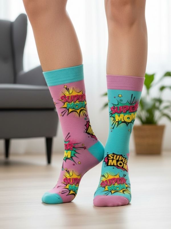 Her gün süper güçlerini kullanan tüm annelere özel! Sağlı Sollu Super Mom Desenli Soket Çorap, annelik gücünü ve sevgisini yansıtan ikonik “Super Mom” temalı motiflerle bezenmiştir. Canlı renkleri ve yaratıcı sağlı sollu (asimetrik) tasarımı sayesinde, annelerin gün içinde bile neşeli ve enerjik hissetmesini sağlar. Bu çoraplar, sadece bir aksesuar değil, aynı zamanda annelere duyulan takdirin ve sevginin tatlı bir sembolüdür. Super Mom çorap, Anneler Günü çorap hediyesi, anne desenli soket çorap veya kadın figürlü eğlenceli çorap arayanlar için mükemmel bir seçimdir.