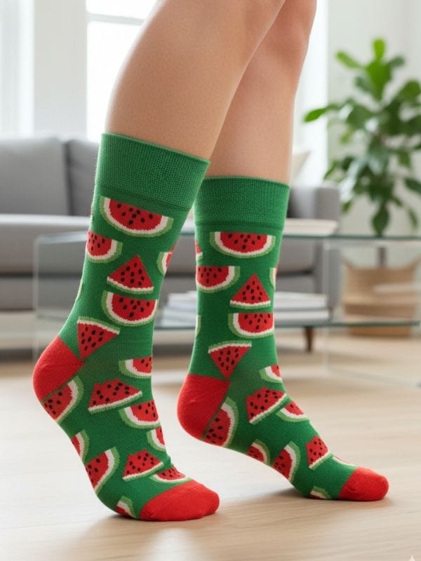 Yüksek kaliteli iplikler ve özenli işçilikle üretilen bu soket çorap, hem deseninin canlılığını hem de yapısındaki üstün konforu uzun süre korur. Çorabın kullanım ömrünü uzatan ve aşınmaya karşı koruyan özellikler; en çok aşınan bölgelerdeki Topuk Burun Takviyesi ve parmaklarda tahrişi engelleyen Dikişsiz Burun teknolojisidir. Ayak bileğini rahatsız etmeden yerinde tutan Sıkmayan Lastik kısmı, kan dolaşımını engellemeden mükemmel bir uyum sunar. Bu temalı çorapları, kot şortlarınızla, koyu renkli pantolonlarınızla veya beyaz spor ayakkabılarınızla kombinleyerek turuncu avokado deseninizin dinamik ve esprili enerjisini ön plana çıkarabilir, tarzınıza özgün bir dokunuş katabilirsiniz.