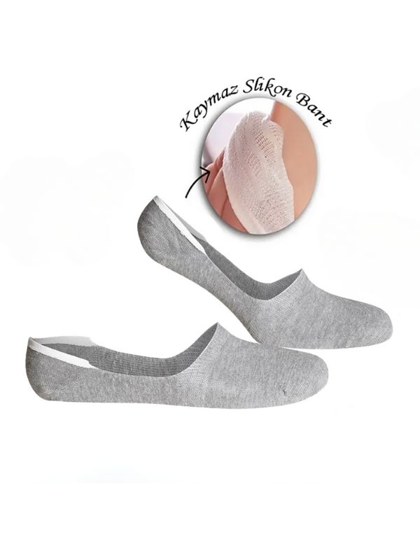 Unisex Bambu Melanj Gri Görünmez Babet Çorap